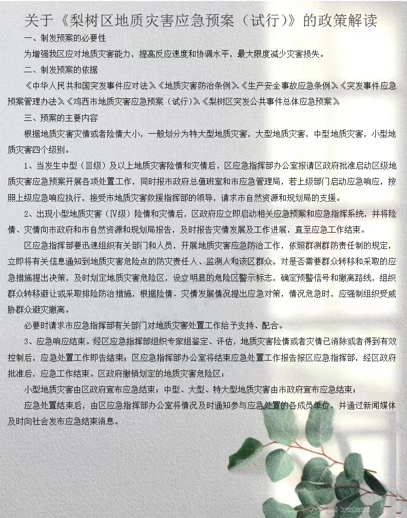 关于《梨树区地质灾害应急预案(试行)》的图文解读